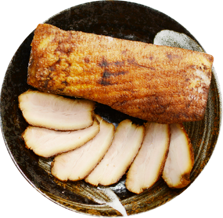 高温の鉄板で焼き、旨味を閉じ込めた良質な豚バラ肉を、